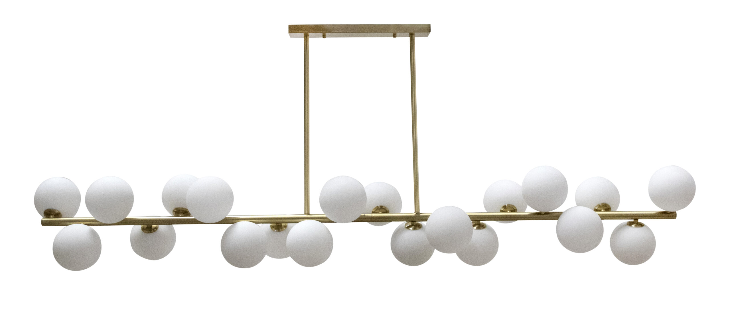The PASADENA Gold 20 Light Opal Glass Bubble Pendant Light is an eye catching, elegant and contemporary fixture. This feature light is a statement during the day, and an essential source of general and ambient lighting by night. With its golden opal glass bubble effect, this design is stunning and versatile, adding industrial character to any space.