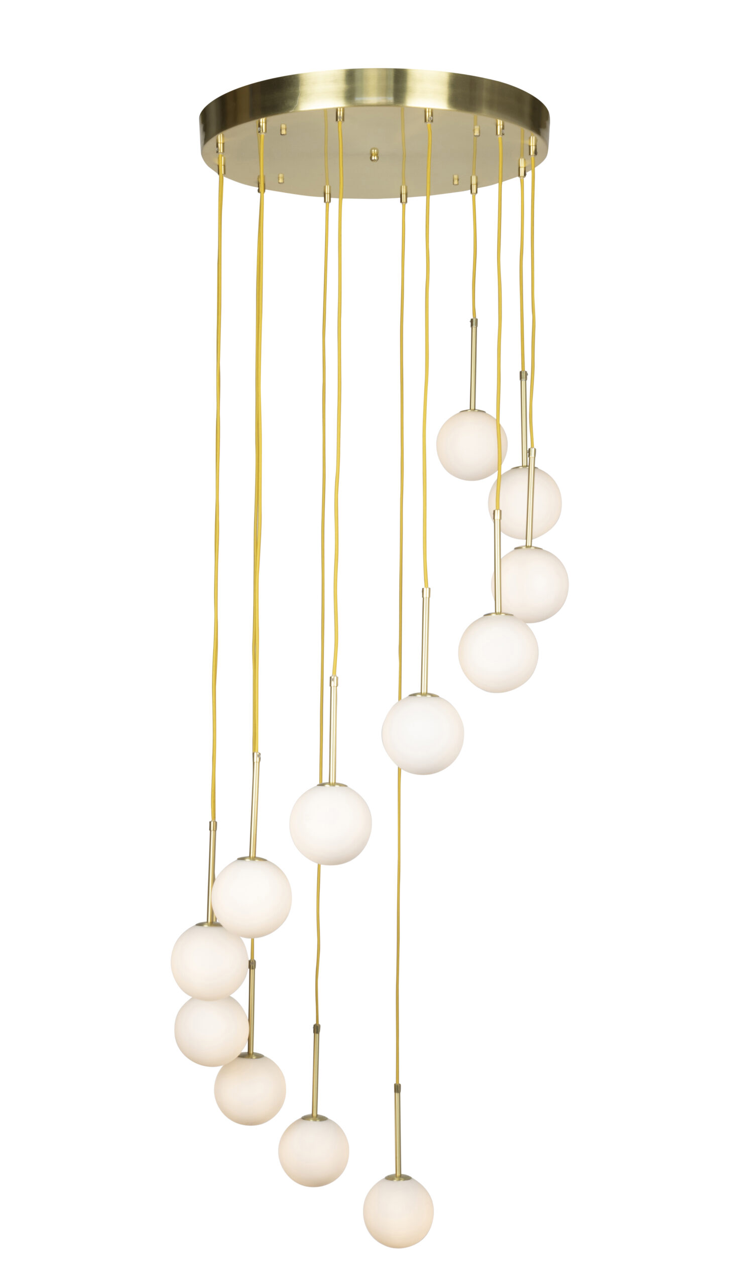 The MIAMI Gold 12 Light Opal Glass Bubble Pendant Light is an eye catching, elegant and contemporary fixture. This feature light is a statement during the day, and an essential source of general and ambient lighting by night. With its opal glass bubble effect, this design is stunning and versatile, adding industrial character to any space.