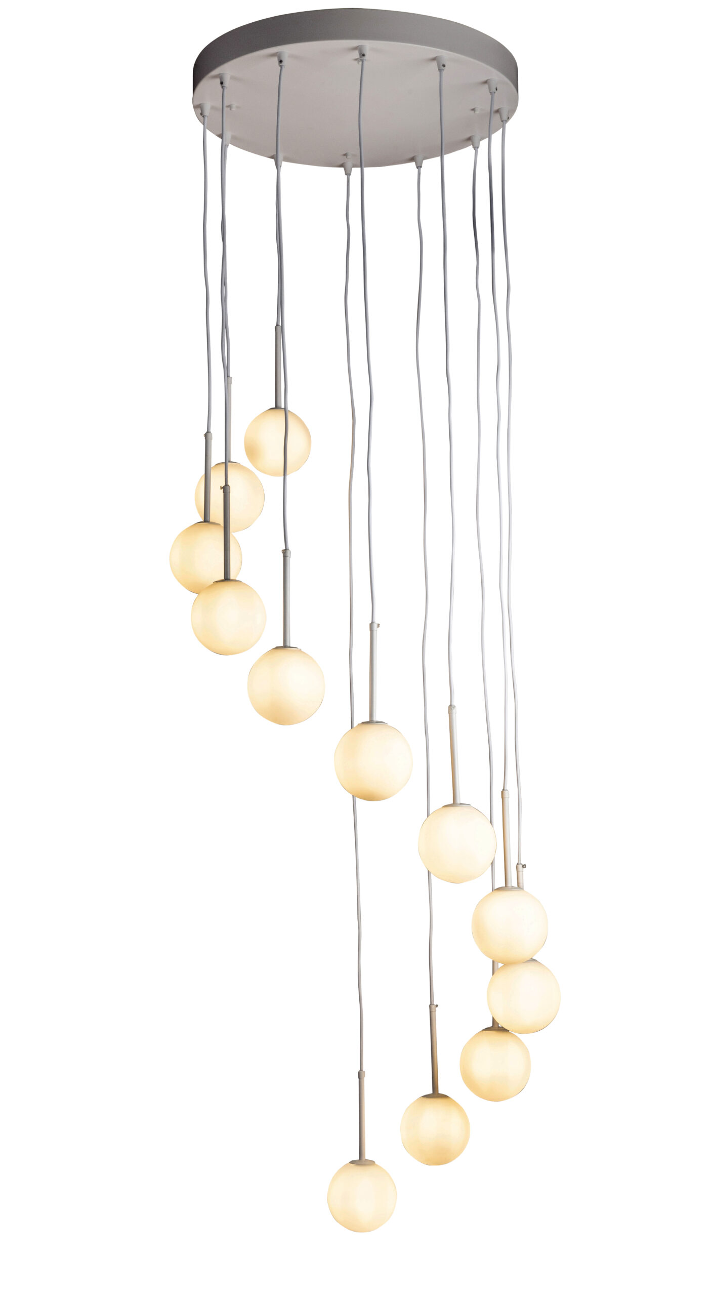 The MIAMI White 12 Light Opal Glass Bubble Pendant Light is an eye catching, elegant and contemporary fixture. This feature light is a statement during the day, and an essential source of general and ambient lighting by night. With its opal glass bubble effect, this design is stunning and versatile, adding industrial character to any space.